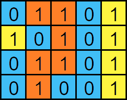 Input: grid = [ [0,1,1,0,1], [1,0,1,0,1], [0,1,1,0,1], [0,1,0,0,1]]